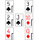 - 7 community cards are placed face down in the center in the shape of an "H"; 3 cards down one column of the "H', 3 cards down the other column of the "H" and 1 card in the middle forming the horizontal bar across the "H"..