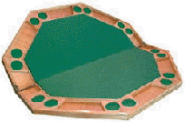 You can spend over $1000 on a Texas Hold'em Table, with drink and chip holders. You can also purchase a folding tabletop that can cost anywhere from $50 to $300. A more economical way to go would be a table covering. Even in this realm you can really go nuts. The high end would be Championship Titan Cloth There is also a much cheaper alternative called speed cloth. This used to be much harder to get from some not so reputable places (AmericanGamingSupply should eat shit and die for selling 3 feet of cloth like it was 9 feet) but Amazon now has 10 Foot Section of High Quality Red Cotton Speed Cloth The most economical table covering is your general everyday tablecloth. You can pick it up in a nice green color. Regular fabrics are better than the plastic kind for game play. If you're ambitious take a ride to your local fabric shop and pick up some cheap green felt. It will cost you about $20 for a good size table. Your players will probably never know it's not the expensive kind. Here are listed some nice ones to choose from:Cover glass tabletops to avoid reflections of your cards!